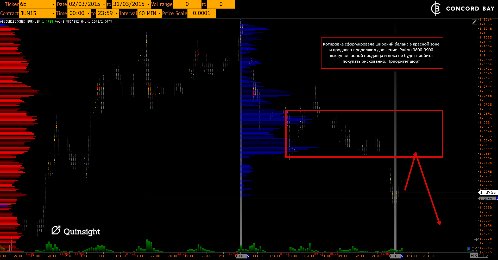 Котировка сформировала широкий баланс в красной зоне, и продавец продолжил движение. Район 0800-0900 выступает зоной продавца и пока не будет пробита покупать рискованно. Приоритет шорт