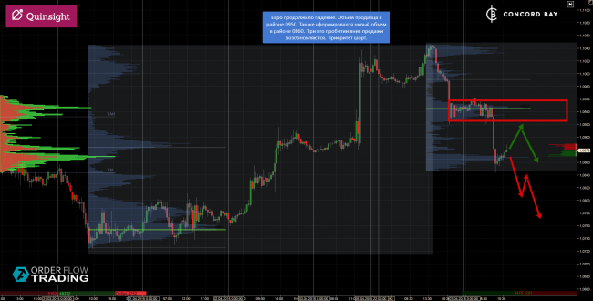 Евро продолжило падение. Объем продавца в районе 0950. Так же сформировался новый объем в районе 0860. При его пробитии вниз продажи возобновляются. Приоритет шорт.